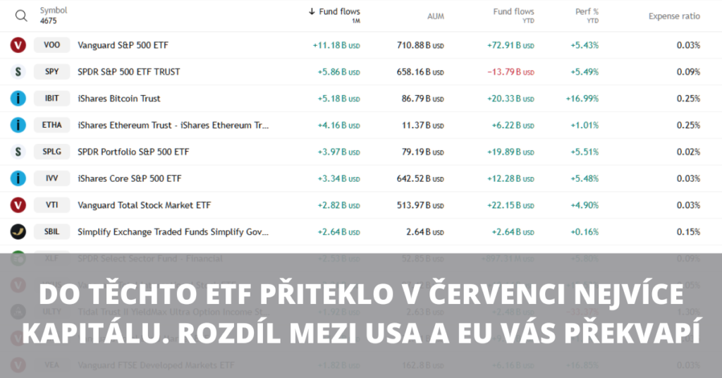 10 ETF, do kterých teď přitéká nejvíce kapitálu (USA vs. EU)