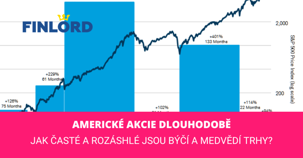 Historické údaje ukazují, že mnohem častěji se americké akcie měřené indexem S&P 500 nachází v růstovém trendu než ve fázi poklesu. Tento obrázek od Charles Schwab ukazuje býčí (Bull, růstová fáze) a medvědí (Bear, fáze poklesu) trhy od roku 1961. Průměrné trvání býčího trhu bylo 64 měsíců s průměrným zhodnocením o 185 %. Průměrný medvědí trh trval 14 měsíců s průměrnou ztrátou 36 %. Aktuálně už býčí trh trvá 39 měsíců a zhodnocení je 94 %.