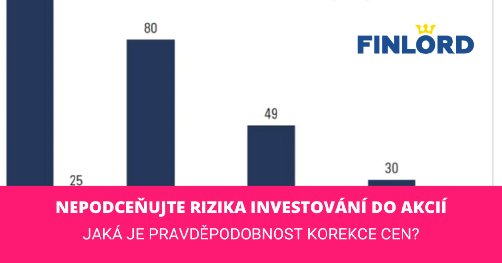 Ohodnocení akcií je aktuálně na zvýšené úrovni, což vytváří prostor pro korekci cen. Podívejme se na kvantifikaci dle historického vývoje pro americké akcie. Korekce o 5 % od vrcholu někdy v průběhu roku nastane s 98 % mírou pravděpodobnosti. Korekce o 5 % oproti počátku roku nastane s 25 % mírou pravděpodobnosti. U 10 % korekce je míra pravděpodobnosti 80 %, případně 20 %. Nezanedbatelné není ani riziko korekce až o 30 %. Historická pravděpodobnost takovéhoto poklesu v průběhu roku je 30 %.